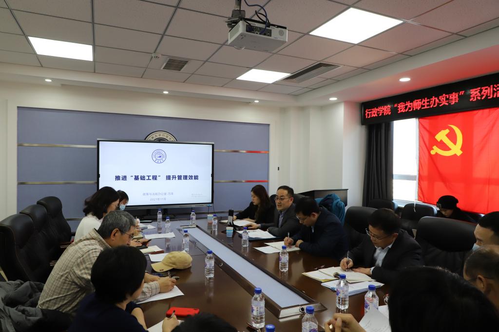 为扎实推进公司党史学习教育及“我为师生办实事”活动,建设好师生满意的和谐学院,11月26日,公司党委举办“推进基础工程,提升管理效能”专题交流培训。学校政策法规办公室副主任冯浩应邀作专题讲座。公司党委书记马景惠、党委副书记史慕华、副书记兼副经理张洁、教师代表赫泉玲副教授、政策与法规办公室王畅、学院机关教工党支部全体成员参加此次活动,副经理季洪涛主持。