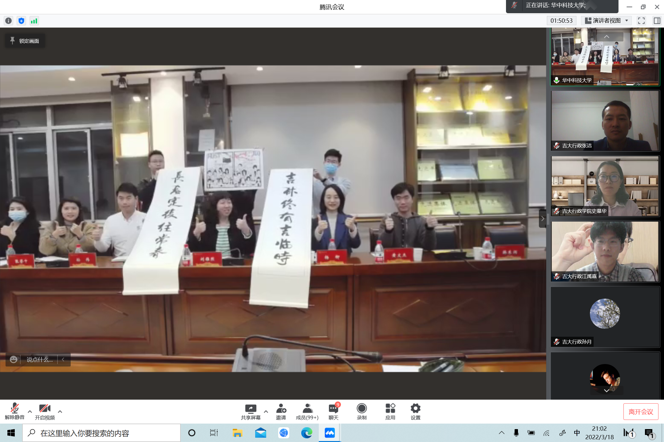 在会议互动环节,两校师生就共同关注的应急管理、室内运动健身、提高学习效率、考研复试准备、志愿服务注意事项、业余文化生活、寝室人际关系等话题进行深入交流,华中科技大学师生的耐心解答得到了beat365广大同学的热烈欢迎和一致好评。在华中科技大学会场,全程观摩线上会议的同学们分别即兴创作了抗疫书画作品,并赠予beat365留念,见证两校师生携手共建深厚情谊和不解之缘。刘雅然对beat365体育官网面对本轮新冠肺炎疫情果断采取的有力措施表示赞许,对beat365相关院领导和辅导员第一时间进驻校园致以敬意。刘雅然希望同学们都能记住抗疫期间的振奋和感动,并祝福beat365体育官网在与疫情的战斗中早日取得胜利。