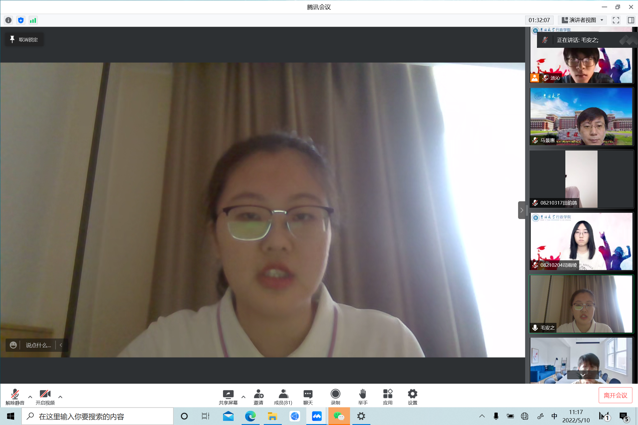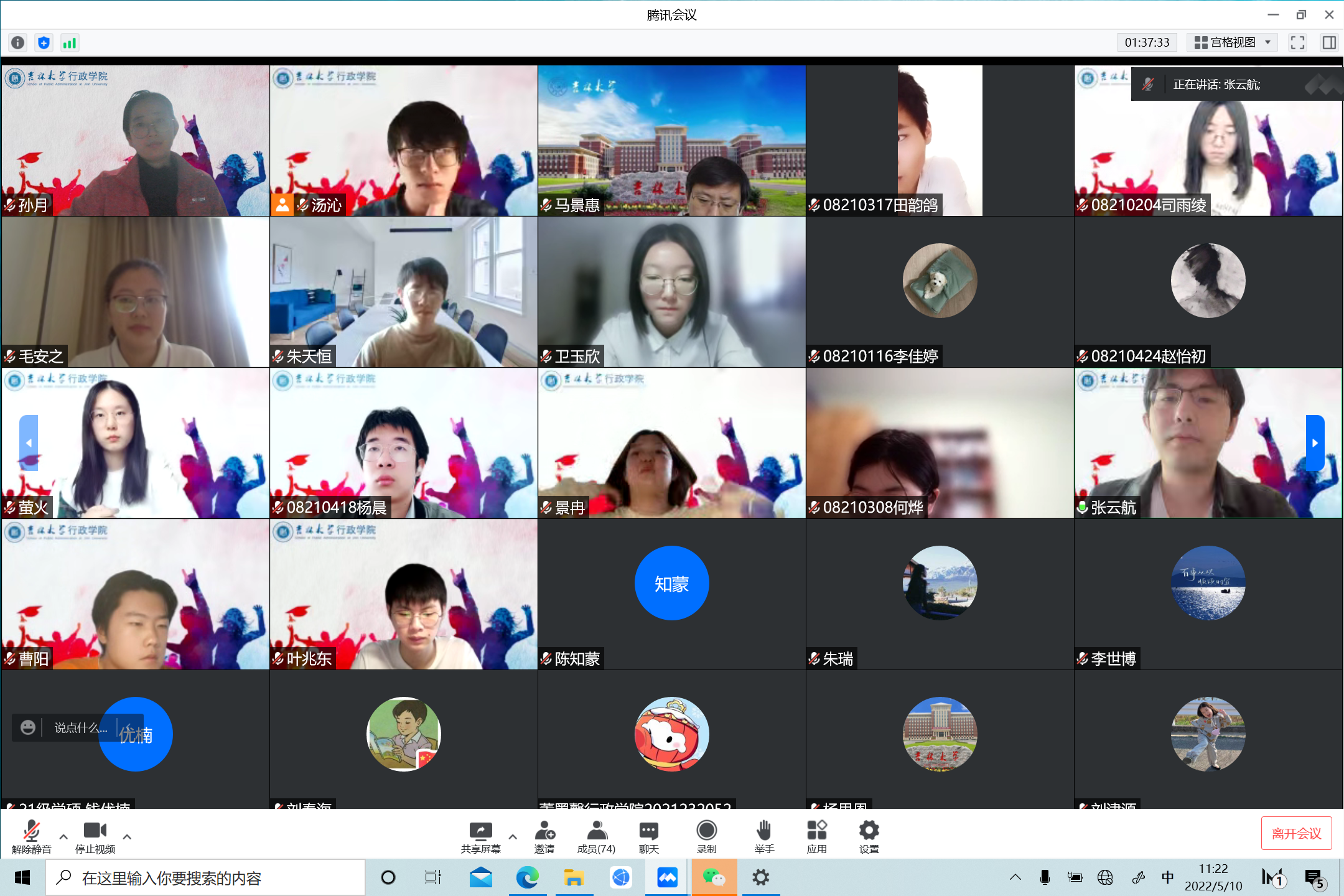庆祝大会结束后,学院广大青年教师、青年员工趁热打铁、学在前头,结合学科专业和个人实际,围绕大会和习近平总书记重要讲话精神分享了感想和体会。大家纷纷表示,庆祝中国共产主义青年团成立100周年大会盛况空前,催人奋进,这是对过去100年间中国青年在党的领导下爱国奋斗建功立业的全面总结,也是向全国青年勠力同心迈向“第二个百年”奋斗目标的时代号召,能够经历这样一个激动人心的历史时刻,既荣幸又振奋。政治学系青年教师郑倩分享了自己入团时的情景,表示作为高校教师要在教书育人中时刻牢记青年兴则国家兴、青年强则国家强,教育引导团员青年将自身发展与人民幸福、国家命运、民族复兴紧密联系在一起,将小我融入大我、将青春献给祖国。毕业生代表毛安之表示,习近平总书记在大会上的讲话深入人心,中国的未来是青年的,中华民族的未来也是青年的,时代已经将火炬传到了当代青年手里,面对重重考验,同学们定将坚定理想信念,唱响青春之歌,不断向前奋进。在校生代表张云航回顾了共产主义信仰之光指引中国青年一路前行的百年历程,结合学校应急管理期间青年员工自我管理、自我监督、自我服务的经历和员工志愿者的感人事迹,表达了强国有我的坚强决心。