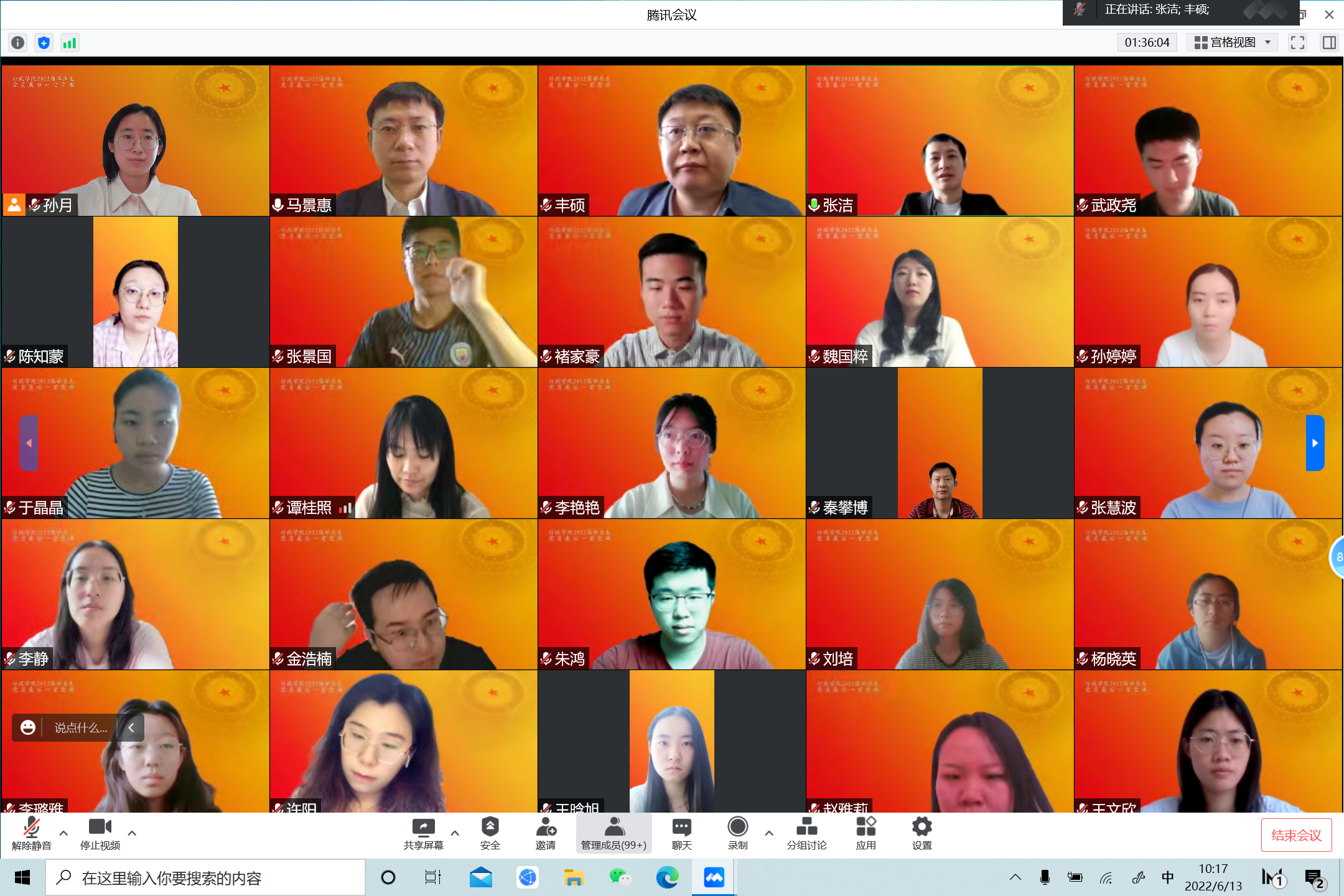 党课最后,马景惠寄语毕业生党员在未来岗位上履职尽责,发挥党员先锋模范作用,在实现党的第二个百年奋斗目标新征程上奋发精进,勇毅前行。马景惠再次向全体毕业生表达美好的临别祝福,与会人员在线上亲切同框合影留念。
