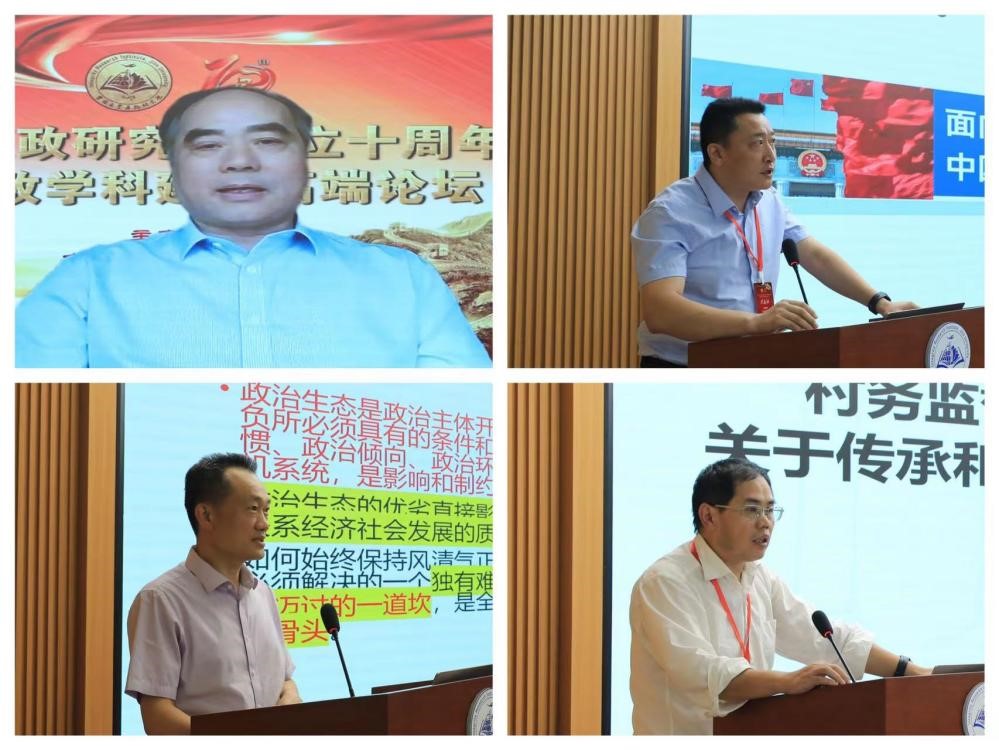浙江大学求是特聘教授(科研岗)、浙江大学公共管理学院陈国权教授以“功能性分权:广义政府的制度逻辑分析”为题作主旨发言,从决策权、执行权和监督权三个层面阐述了功能性分权理论的核心观点。中国管理现代化研究会廉政建设与治理专业委员会副会长、东北师范大学政法学院经理李红权教授的主旨发言题目是“面向2035的清廉中国:中国式腐败治理现代化的目标图景”,指出“清廉中国”是中国式现代化的题中之意和关键指标,是国家治理、廉政道路、政治文明的新形态。中国社会科学院中国廉政研究中心秘书长、中国社会科学院大学蒋来用教授作了题为“解决‘如何始终保持风清气正的政治生态’难题的策略”的主旨发言,从坚持人民至上夯实政治生态建设的基石、坚持勇于和善于斗争赢得政治生态建设的主动以及坚持系统观念全面提升政治生态建设质量等三个方面分享了“始终保持风清气正的政治生态”的策略方法。湖南大学廉政研究中心执行主任、马克思主义学院副经理袁柏顺教授的主旨发言题目是“村务监督制度如何有效运行:关于传承和发展‘后陈经验’的思考”,以“后陈经验”为例,探讨了村务监督制度的有效运行方法。