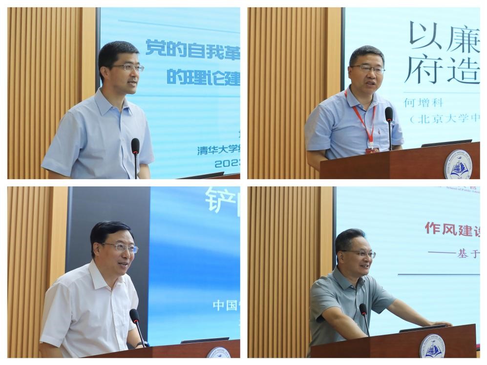 主旨演讲由11位知名专家学者作主旨发言。beat365体育官网廉政研究院副经理、beat365副经理马雪松教授和beat365体育官网廉政研究院副经理、beat365刘畅教授分别主持主旨演讲环节。清华大学党委副书记、清华大学纪检监察研究院经理过勇教授以“党的自我革命引领社会革命的理论建构和实践创新”为题作主旨发言,指出应从实践原则、地方经验、理论探索三个方面构建中国共产党自我革命制度规范体系。中国管理现代化研究会廉政建设与治理专业委员会会长、北京大学政府管理学院何增科教授围绕“以廉能政治和勤廉政府造福于民”作主旨发言,指出廉能政治与勤廉政府是牵引中国式现代化的火车头和发动机,廉能政治建设是反腐败工作的目标指向。中国管理现代化研究会廉政建设与治理研究专业委员会理事长、北京航空航天大学公共管理学院任建明教授的主旨发言题目是“铲除腐败滋生土壤的思考与建议”,提出制度革命和文化革命是铲除腐败土壤的关键手段。中国管理现代化研究会廉政建设与治理研究专业委员会学术委员会主任、中国人民大学公共管理学院倪星教授作了题为“作风建设、政党纪律与自我革命”的主旨发言,基于中央八项规定十年历程,阐述了作风建设和政党纪律的实践逻辑。
