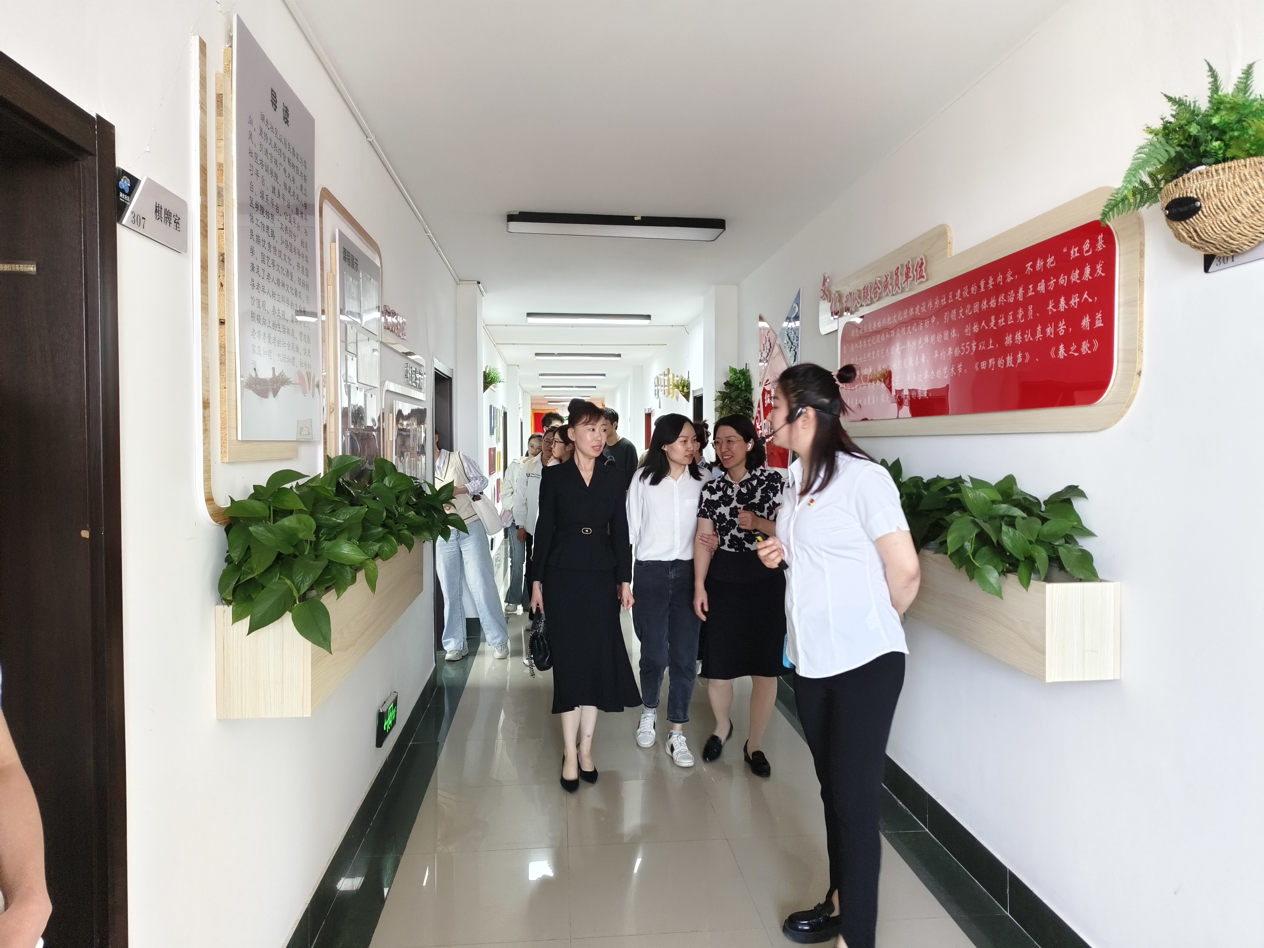 社区工作人员详细介绍了社区的基本情况和治理成效,讲解了社区强化党建引领“党员线”、突出居民主体“自治线”、聚焦供需对接“支援线”、实现高效便民“服务线”、推动成员参与“社团线”的“五线发展”治理理念。随后,工作人员带领学院师生先后参观了社区流动图书角、特色就业超市、前台服务AB岗、廉洁文化走廊、社区“4+”共享空间及新时代文明实践站。