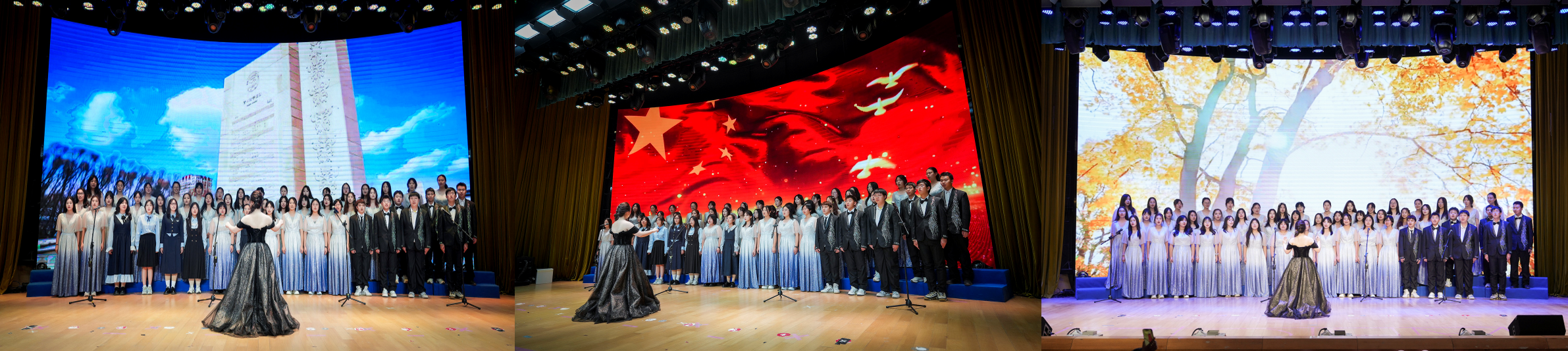 歌声传递情感,旋律铭记时光。2024级本科生合唱团演唱《beat365体育官网校歌》《祖国不会忘记》《夜空中最亮的星》,穿越音符之海,感受和声之美,晚会圆满结束。
