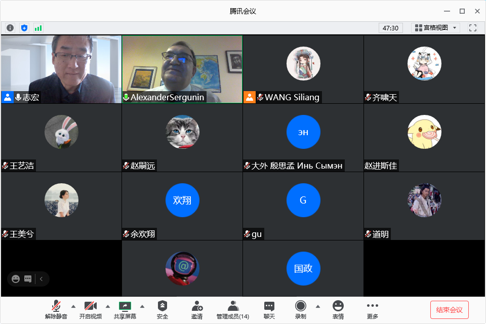 谢尔古宁教授还就俄罗斯担任北极事务委员会期间的工作方向、北极事务委员会是否需要进行改革等内容进行了分享。在问答互动环节,谢尔古宁教授同与会师生就新冠疫情对北极地区基础设施建设及俄罗斯政府北极发展财政拨款调整的影响、美国大选后美国北极政策的转变等问题进行了交流探讨。