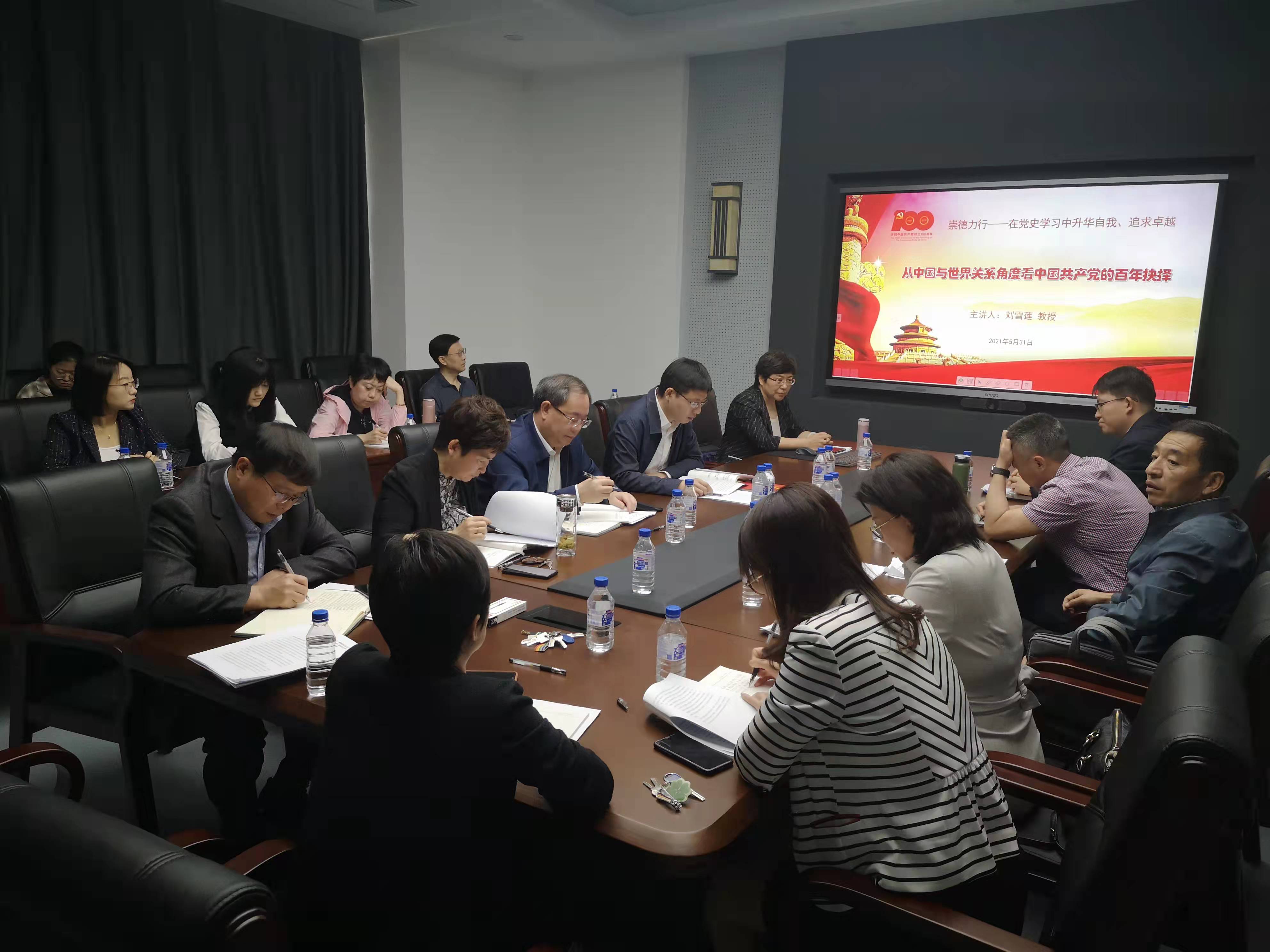 按照公司党委理论学习中心组党史学习教育第一阶段学习计划,5月31日上午,公司党委理论学习中心组在东荣大厦B304会议室召开“崇德力行——在党史学习中升华自我,追求卓越”专题学习研讨会。学院邀请刘雪莲教授做题为“从中国与世界关系角度看中国共产党的百年抉择”专题导学报告,学院领导班子成员、党委委员、国际政治学系党员参加了本次集中学习研讨,公司党史学习教育第4指导组列席研讨会并作指导。会议由党委书记马景惠主持。